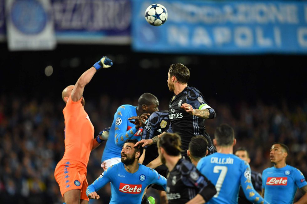 Se anunciaba un infierno en San Paolo, y a punto estuvo de sumir al Real Madrid en un incendio. Suerte que por allí andaba Sergio Ramos, apagafuegos últimamente habitual que esta vez se salió de la zona Cesarini para adelantarse un poco y evitar tensiones de última hora. Menos épico, pero más práctico. Dos cabezazos suyos sentenciaron en la segunda parte al Nápoles, que al abrigo de su apasionada gente estaba siendo hasta entonces un más que digno rival y que se había adelantado con gol de Mertens, dejando la remontada en un solo tanto tras el 3-1 del Bernabéu. Pero apareció el zaguero sevillano para arreglar el desaguisado de un equipo que no encontraba las vías para imponerse, rematando Morata en los minutos finales el 1-3 con el que allanaba su camino a los cuartos de final de la Liga de Campeones.