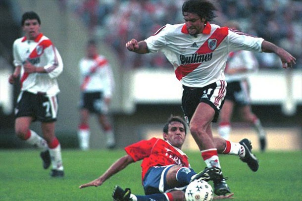 Y eso que se estrenó en primera con aquellos que para los de River son los ogros del cuento: debutó con Boca. No obstante no tuvo suerte en La Bombonera, más por problemas extradeportivos que por asuntos del balón, y se convirtió en 1990 en el futbolista más joven en hacer el trasvase entre los eternos rivales. Fue mediante un trueque con Batistuta, quien no convencía a Passarella, así que tampoco le salió mal la jugada a Boca.